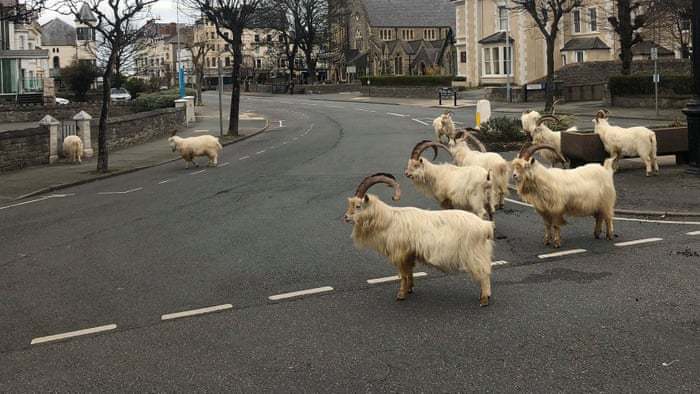 İngiltərənin Llandidno şəhərində koronavirus səbəbind'n boş qalan küçələrə dağ keçiləri enib.