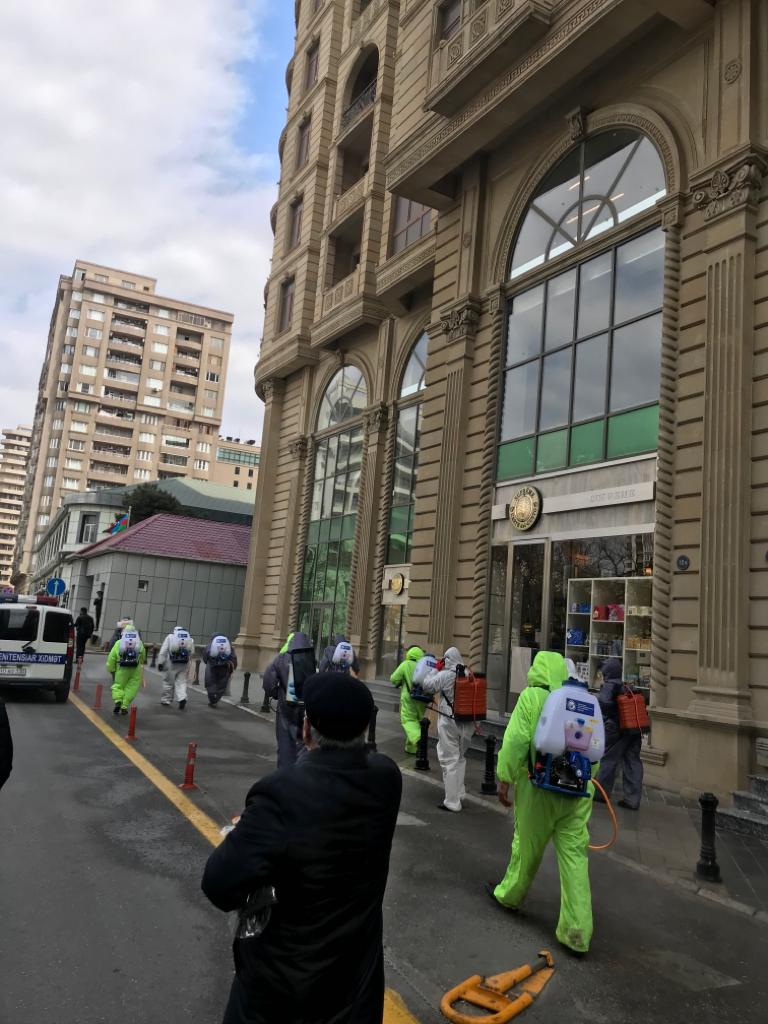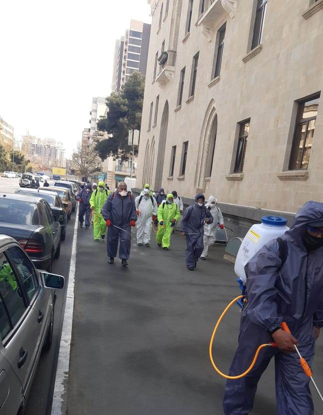 Nəsimi rayonu ərazisində koronavirus (COVİD - 19) infeksiyasına yoluxma hallarına yol verilməməsi və onun qarşısının alınması ilə bağlı qabaqlayıcı profilaktik tədbir olaraq rayon ərazisindəki küçə və prospektlər, parklar, yollar, inzibati binaların, ticarət obyektlərinin, metrostansiyaların çıxışlarının ətrafları, yaşayış binalarının girişləri, lift kabinələri və məişət tullantıları konteynerləri zəruri avadanlıqlarla təchiz olunmuş işçi qrupları tərəfindən dezinfekasiya olunur. ![]()