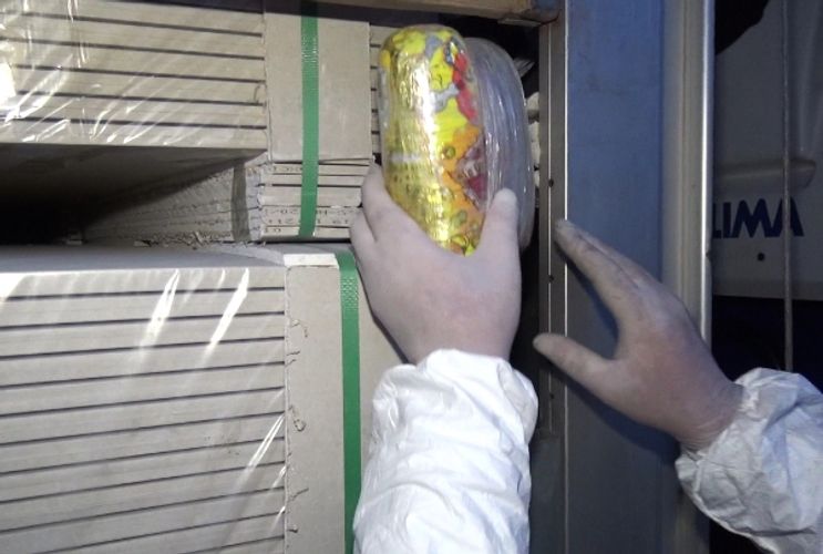Daha sonra yük avtomobilinin qoşqusu yoxlanılıb. Bu zaman isə qoşquda olan paletlərə yığılmış "alçipan" yükünün ön hissəsində - paletlər ilə qoşqunun ön divarı arasındakı boşluqda 7 ədəd müxtəlif ölçülü bağlamalar aşkar olunub.