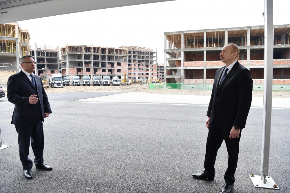 Prezident İlham Əliyev aprelin 24-də Sumqayıt şəhərindəki yataqxanalarda müvəqqəti məskunlaşan 3042 məcburi köçkün ailəsi üçün Abşeron rayonu ərazisində yaşayış binalarından ibarət məhəllələrdə tikinti işlərinin gedişi ilə tanış olub.