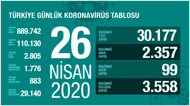 Türkiyədə son sutka ərzində 99 nəfər koronavirus qurbanı olub.