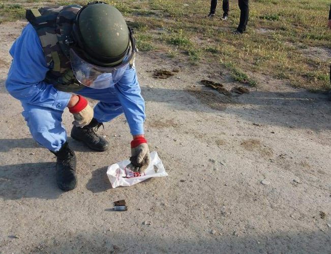 Əl qumbarasının və patronların ətrafında 2 000 kv.m əraziyə yerüstü, 30 kv.m əraziyə isə yeraltı baxış keçirilib, əlavə təhlükəli əşya və qurğu aşkarlanmayıb.![]()
