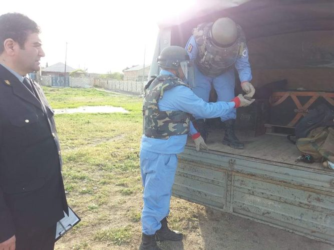 Agentliyin mütəxəssisləri və Xızı Rayon Polis Şöbəsinin əməkdaşları tərəfindən həmin əraziyə baxış keçirilib. Təhlükəsizliyi təmin etmək məqsədilə ərazi polislər tərəfindən mühasirəyə alınıb. Agentliyin mütəxəssisləri tərəfindən aparılan əməliyyat-axtarış tədbirləri nəticəsində 1 ədəd F-1 əl qumbarası və 7 ədəd müxtəlif çaplı patronlar aşkar olunub, zərərsizləşdirilməsi üçün götürülərək Agentliyin mərkəzi məhvetmə ərazisinə daşınıb.