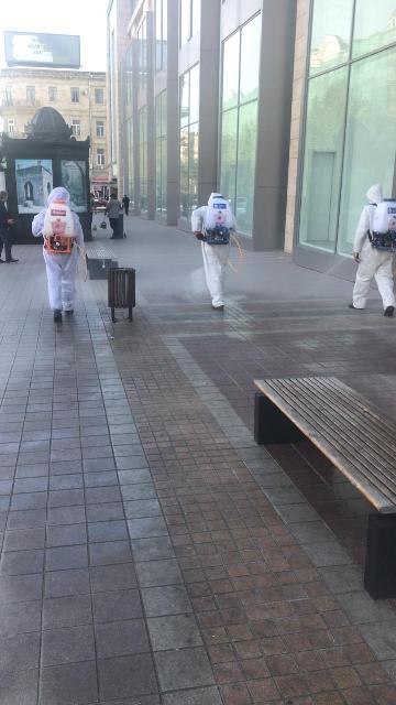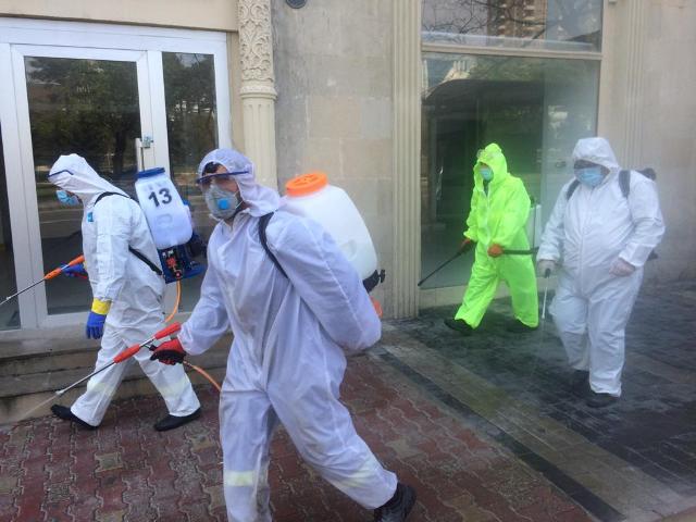 Görülən tibbi-profilaktik tədbirlər çərçivəsində rayon ərazisindəki küçə və prospektlər, parklar, yollar, inzibati binaların, ticarət obyektlərinin, metrostansiyaların çıxışlarının ətrafları, yaşayış binalarının girişləri, lift kabinələri və məişət tullantıları konteynerlərinin zəruri avadanlıqlarla təchiz olunmuş işçi qrupları tərəfindən dezinfeksiyası işləri həyata keçirilir.