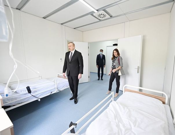 AZƏRTAC xəbər verir ki, Prezident İlham Əliyev və Birinci vitse-prezident Mehriban Əliyeva modul tipli xəstəxana kompleksinin açılışında iştirak ediblər.
