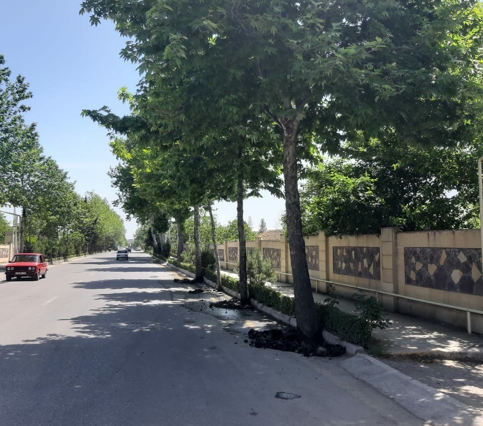 Ağacların dibi Nazirliyin əməkdaşlarının nəzarəti altında betondan təmizlənərək suvarılıb.