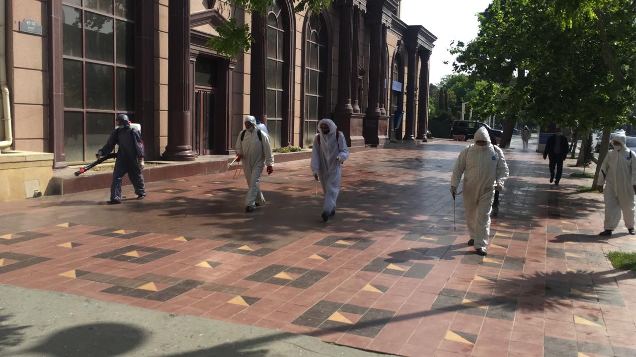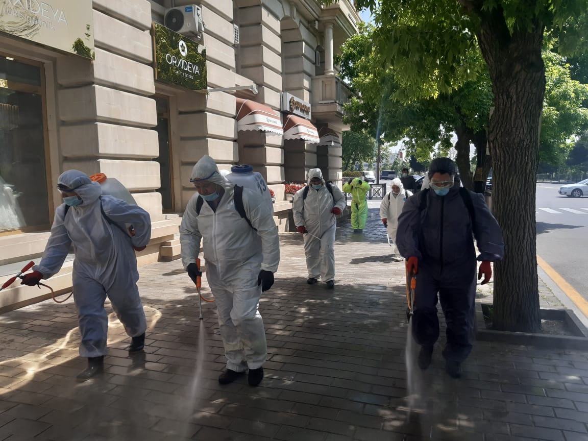 Rubrika.Az xəbər verir ki, rayon ərazisində sanitar-gigiyenik vəziyyət ciddi nəzarətdə saxlanılaraq təxirəsalınmaz işlər görülür. Görülən tibbi-profilaktik tədbirlər çərçivəsində rayon ərazisindəki küçə və prospektlər, parklar, yollar, inzibati binaların, ticarət obyektlərinin, metrostansiyaların çıxışlarının ətrafları, yaşayış binalarının girişləri, lift kabinələri və məişət tullantıları konteynerlərinin zəruri avadanlıqlarla təchiz olunmuş işçi qrupları tərəfindən dezinfeksiyası işləri həyata keçirilir.