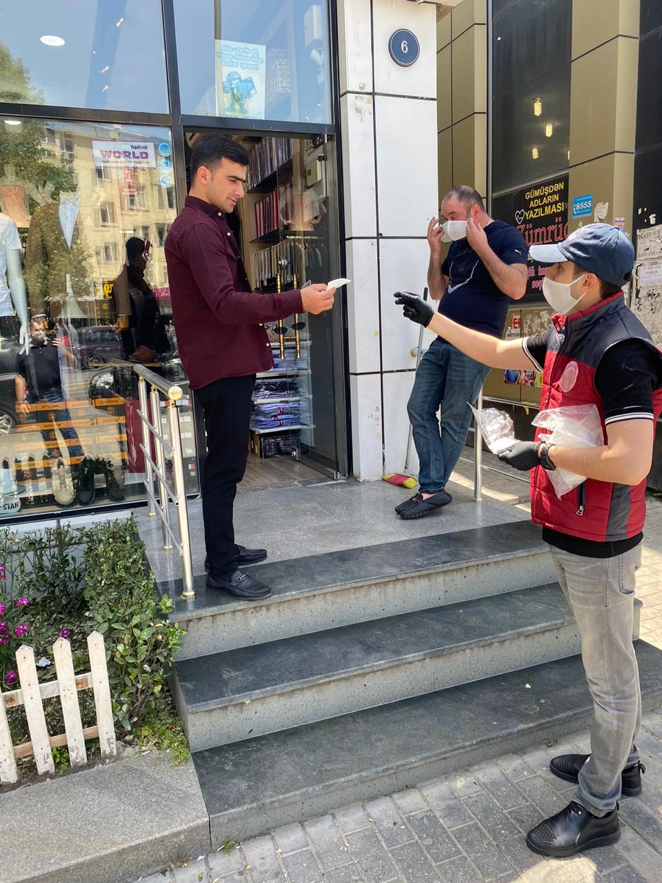 Mayın 16-də Rayon İcra Hakimiyyətinin əməkdaşları növbəti dəfə rayon ərazisində sakinlərlə fərdi izahetmə-xəbərdarlıq işləri apararaq, onlara şəxsi gigiyena qaydalarına əməl etməyi, özünütəcrid tədbirlərinə uyğun davranmağı, digər şəxslərlə minimum kontaktda olmağı, qoruyucu tibbi maskadan mütləq qaydada istifadə edərək insanlarla təmas zamanı 2 metrlik ara məsafəsini saxlamağı tövsiyə edərək vətəndaşlara tibbi maskalar paylayıblar. ![]()