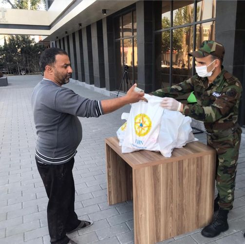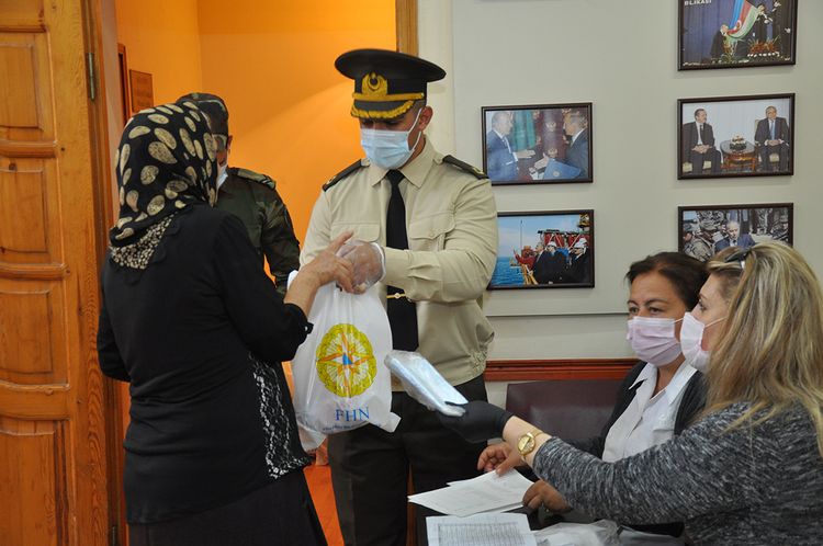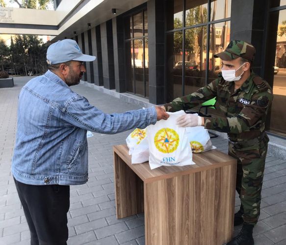 Rubrika.Az xəbər verir ki, Fövqəladə Hallar Nazirliyinin əməkdaşları tərəfindən Əmək və Əhalinin Sosial Müdafiəsi Nazirliyinin verdiyi siyahılar əsasında Bakı şəhərinin Xəzər, Sabunçu, Suraxanı, Qaradağ, Xətai və Binəqədi rayonlarında yaşayan tənha şəxslərə və aztəminatlı ailələrə, o cümlədən şəhid ailələrinə ərzaq yardımı və tibbi maskalar çatdırılır.