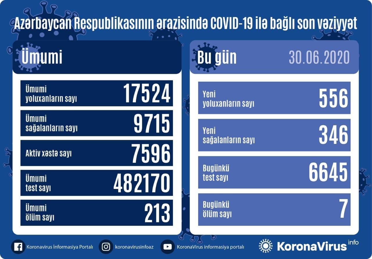 Azərbaycanda daha 556 nəfər koronavirusa yoluxub, 7 nəfər ölüb