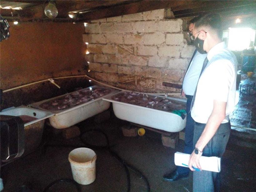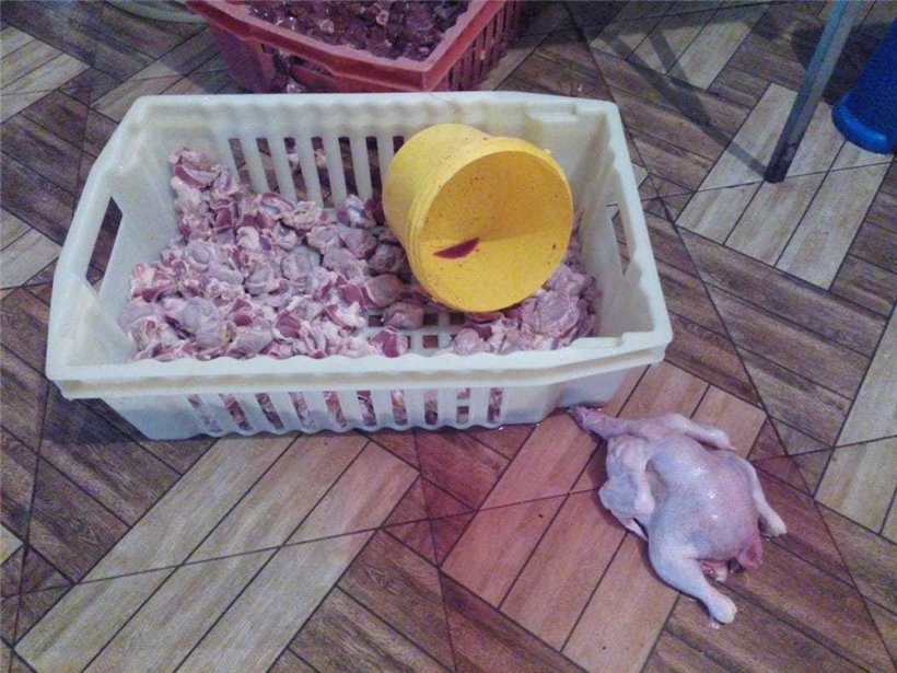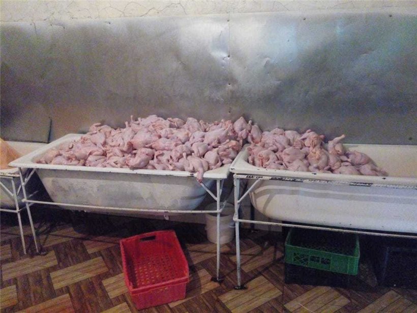 AQTA-dan Rubrika.Az-a verilən məlumata görə, baxış zamanı sexin yaşayış evinin həyətində qanunsuz fəaliyyət göstərdiyi, kəsilib təmizləndikdən sonra emal sahəsinə gətirilən toyuqların nasosa birləşdirilmiş xüsusi iynə ucluğa malik avadanlıqla daxilinə maye vurularaq çəkisinin qanunsuz yolla, su hesabına 300-350 qr artırıldığı məlum olub.