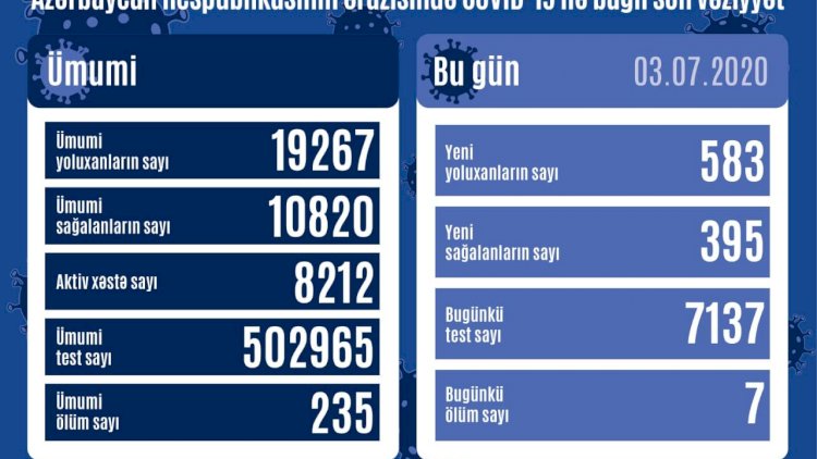 Bu gün daha 583 nəfərdə koronavirus aşkarlanıb, 7 nəfər isə vəfat edib.