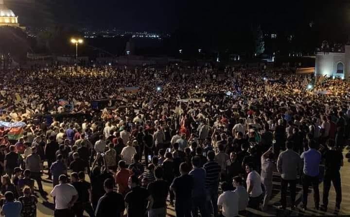 Rubrika.Az xəbər verir ki, əllərində Azərbaycan bayraqlarını tutmuş minlərlə insan küçələrə axışaraq “Qarabağ” şüarını səsləndiriblər.