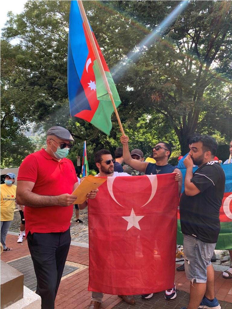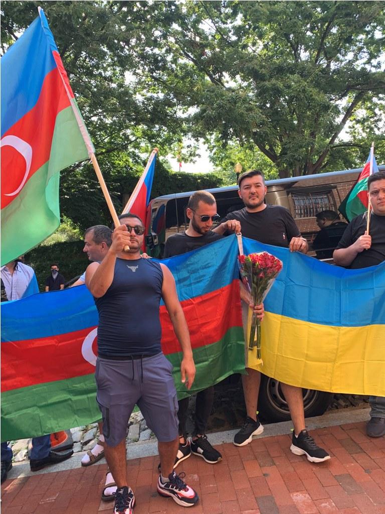 Aksiya zamanı həmçinin bir neçə gün əvvəl Ukraynanın Ermənistandakı səfirliyinə edilən hücum da qınanılıb.