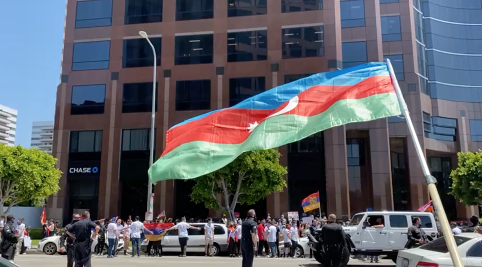 Baş Konsulluqdan “Report”a verilən məlumatda bildirilir ki, ermənilər 21 iyul 2020-ci il tarixində Azərbaycanın Los Ancelesdəki Baş Konsulluğunun binasını əhatəyə alaraq ölkəmizə qarşı aqressiv və təxribatçı şüarlarla etiraz aksiyası keçiriblər. Ancaq onların gözləmədikləri halda, Kaliforniyada yaşayan Azərbaycan icmasının üzvləri yüzlərlə ermənin qarşısına çıxaraq, onların bu təxribatına mane olublar: