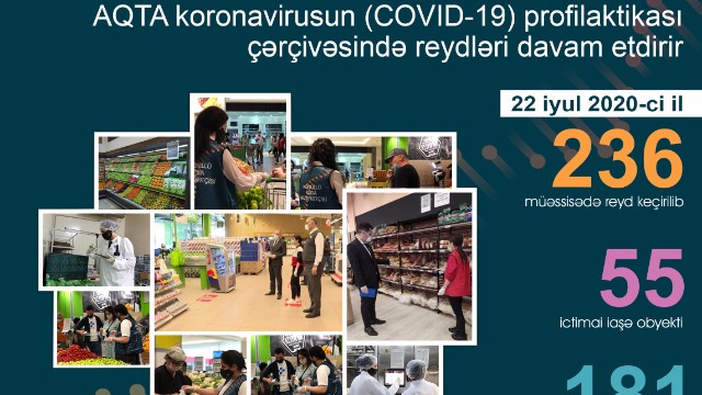 AQTA-dan Rubrika.Az-a verilən xəbərə görə, Agentliyin əməkdaşları tərəfindən 22 iyul 2020-ci il tarixində Bakıda, eləcə də regionlarda fəaliyyət göstərən 55 ictimai iaşə obyekti, 181 ərzaq satışı mağazası olmaqla ümumilikdə 236 müəssisədə reyd keçirilib. Sahibkarlıq subyektlərinə qida təhlükəsizliyi sahəsində qanunvericiliyin tələbləri izah edilib, icrası məcburi göstərişlər və maarifləndirici tövsiyələr verilib.