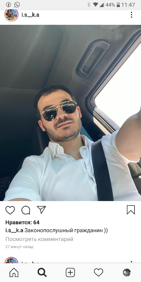 O şəxsi “İnstagram” hesabında yeni şəklini “Qanuna riayət edən vətəndaş” başlığını ilə paylaşıb.