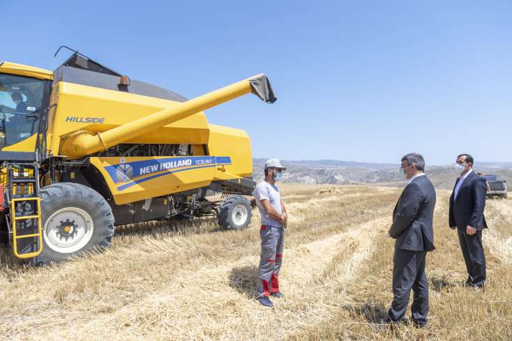 Nazir İnam Kərimov Şamaxının dağlıq ərazilərində müasir kombaynlarla taxıl biçininin aparılması prosesində iştirak edib