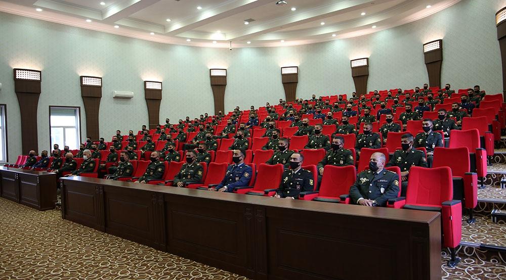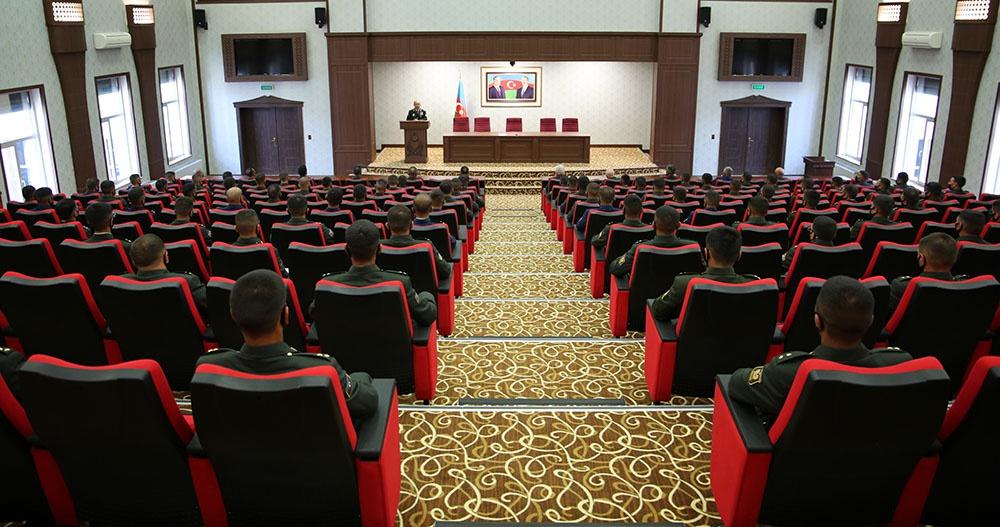 Heydər Əliyev adına Azərbaycan Ali Hərbi Məktəbini və Azərbaycan Tibb Universitetinin Hərbi Tibb Fakültəsini bu il bitirmiş, hərbi hissələrdə müvafiq vəzifələrə təyin edilərək xidmətini davam etdirən zabitlərlə keçirilən təlim-metodiki toplantıda əsas diqqət zabitlərin taktiki biliklərinin və qərar qəbuletmə bacarıqlarının artırılmasına yönəldilib. Əlahiddə Ümumqoşun Ordunun Təlim-Tədris Mərkəzindəki müxtəlif təlim trenajorlarında şəxsi heyətin sürücülük və atəş bacarıqları praktiki olaraq yoxlanılıb.