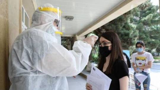 İmtahan binasına daxil olan iştirakçıların məsafədən ölçə bilən elektron termometrlə bədən hərarətləri yoxlanılıb, zəruri dezinfeksiyaedici vasitələrdən istifadə olunub.