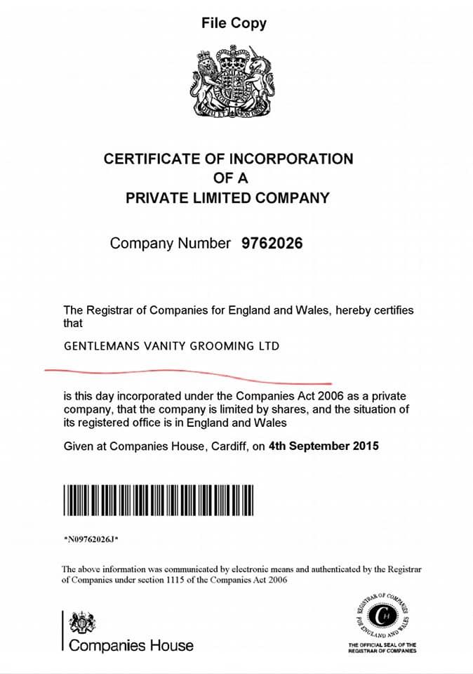 Bu şirkətlə eyni gündə Afiq Aslanov Londonda GENTLEMANS VANITY GROOMING LTD-ni qeydiyyatdan keçirib. Şirkət 2016-cı ilin avqustundan REFINED GROOMING LTD adı ilə fəaliyyət göstərib, bir ay sonra isə THE NOBLE GENTLEMAN LTD kimi fəaliyyətini davam etdirir. Qeydiyyat nömrəsi 09762026, hüquqi ünvanı Woodgate House, 2-8 Games Road, Cockfosters, Herts, England, EN4 9HN-dir.