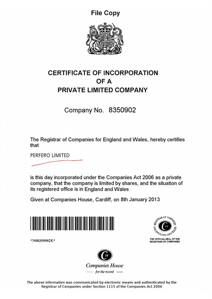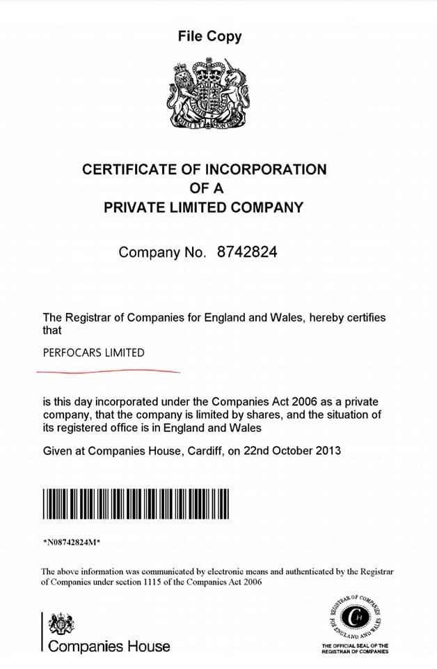 Sənədlərə görə PERFOCARS LIMITED Woodgate House, 2-8 Games Road, Cockfosters, Herts ünvanında hüquqi qeydiyyatdadır.