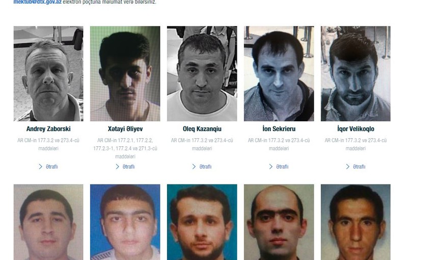 Bu bölmədə DTX tərəfindən axtarışa verilən şəxslərin fotoları, habelə onlarla bağlı digər məlumatlar yer alıb.