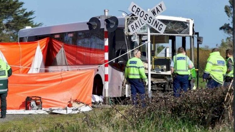 Yeni Zelandiyada məktəbliləri daşıyan avtobus qatarla toqquşub.