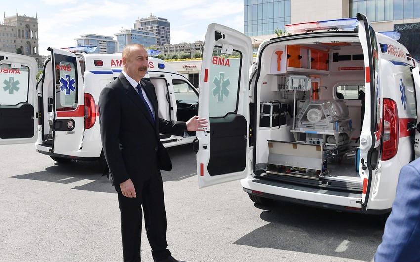 22 сентября президент Азербайджанской Республики Ильхам Алиев и первая леди Мехрибан Алиева ознакомились с доставленными Государственным агентством по обязательному медицинскому страхованию в страну новыми автомобилями скорой медицинской помощи.