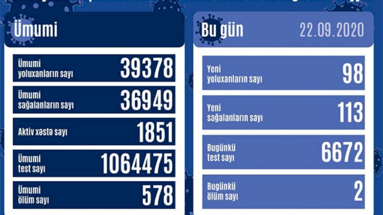 Azərbaycanda bu gün koronavirus infeksiyasına 98 yeni yoluxma faktı qeydə alınıb, 113 nəfər müalicə olunaraq sağalıb və evə buraxılıb.
