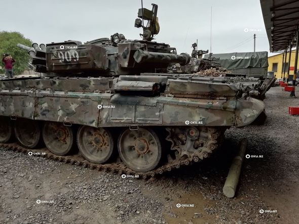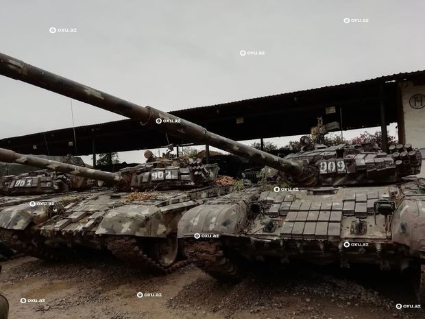 Azərbaycanın işğaldan azad olunan ərazilərində Azərbaycan Ordusu tərəfindən Ermənistanın silahlı qüvvələrinə məxsus çoxsaylı məhv edilən və işlək vəziyyətdə olan zirehli texnika, silah-sursat mövcuddur”. ![]()