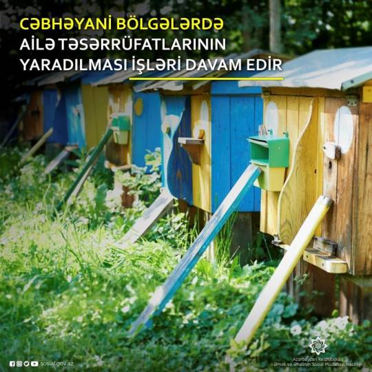 Təkcə son bir ayda Əmək və Əhalinin Sosial Müdafiəsi Nazirliyinin tabeliyindəki Dövlət Məşğulluq Agentliyi tərəfindən özünüməşğulluq proqramı çərçivəsində cəbhəyanı rayonlarda 650 şəxs mal və materiallar formasında aktivlərlə təmin olunublar. Onların əksər hissəsini şəhid ailələrinin üzvləri, Qarabağ müharibəsi əlilləri və veteranları, digər kateqoriyalara aid əlilliyi olan şəxslər, məcburi köçkünlər, çoxuşaqlı ailələrin üzvləri və b. təşkil edib.