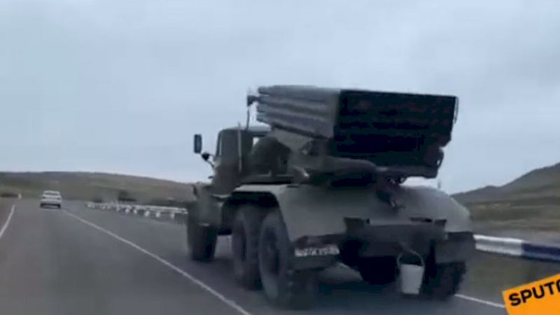 Guya Rusiya silahlı qüvvələrinə məxsus "Qrad" raket sistemlərinin Qarabağ yollarında hərəkətinin görüntüləndiyi videonun "Sputnik-Ermənistan” telegram-kanalı tərəfindən yayımlandığı bildirilir. Bu barədə "Royters”də məlumat verib. Jurnalistlər Laçın "dəhliz”ində iki yaylım atəşli raket sistemi görüblər.