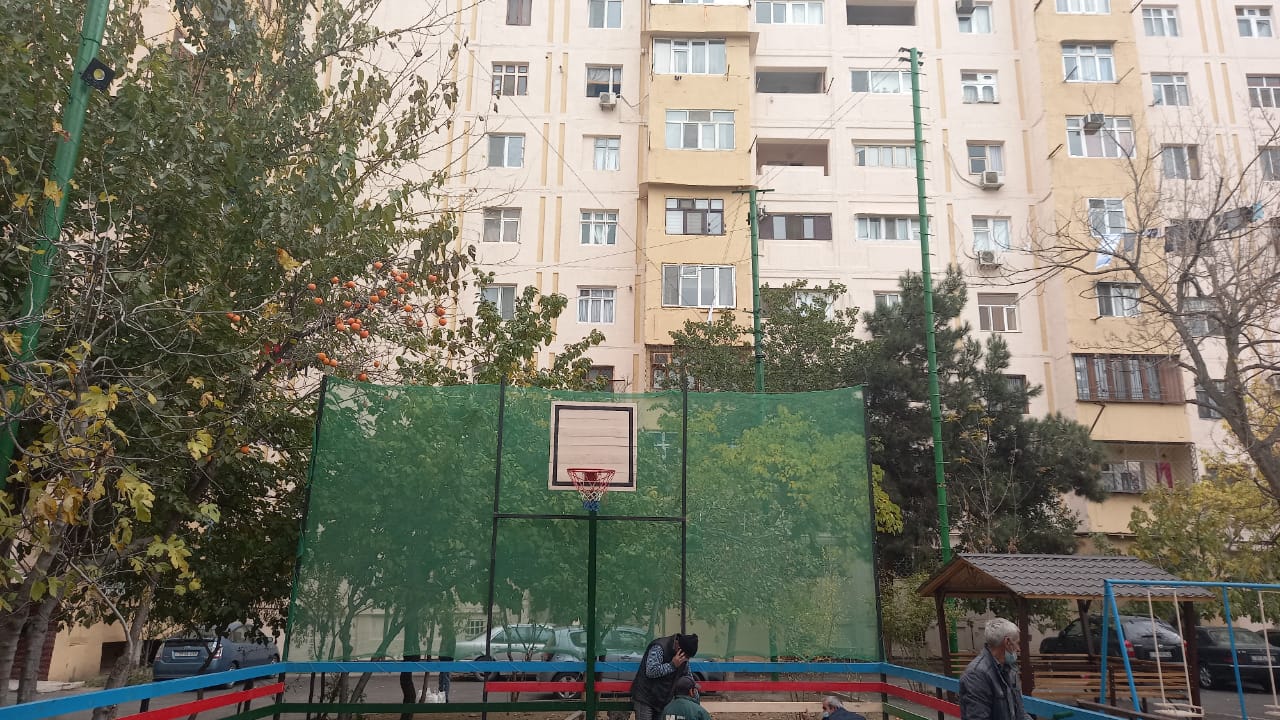 Həyətdə yüngül konstruksiyalardan ibarət basketbol meydançası quraşdırılmış və işıqlandırma sistemi yenidən qurulmuşdur.