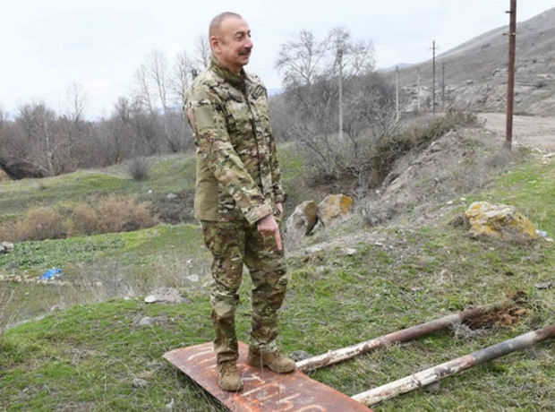 Dövlətimizin başçısı burada mənfur düşmənin quraşdırdığı, özünə saxta milli kimlik, saxta varlıq yaratmaq arzusundan doğan erməni dilində yazılmış lövhəni sökməyə əsgərlərimizdən xahiş edib.
