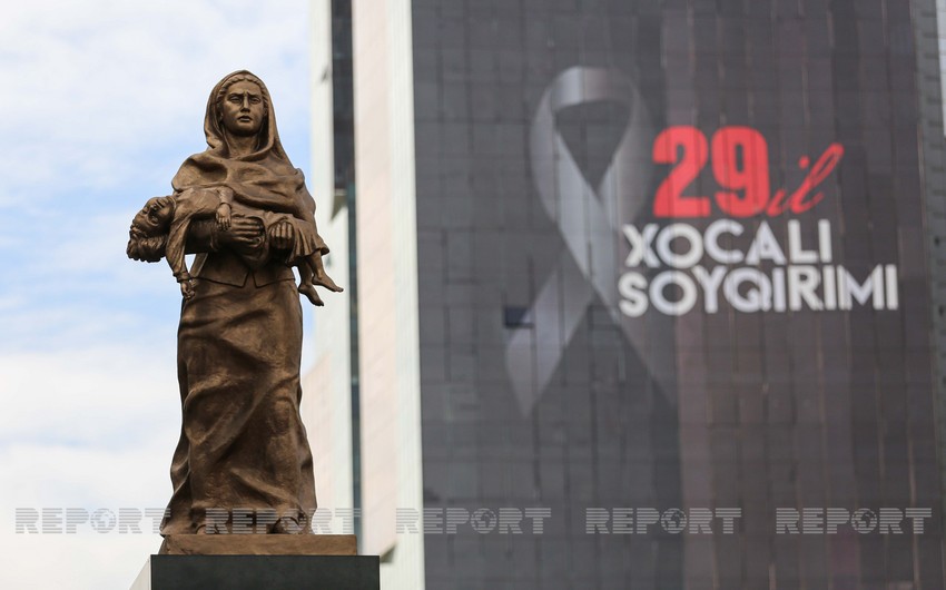 Сегодня утром о случаю 29-й годовщины Ходжалинского геноцида президент Азербайджанской Республики Ильхам Алиев и первая леди Мехрибан Алиева посетили памятник “Крик матери”, воздвигнутый в память о жертвах трагедии в Баку. Президент Ильхам Алиев возложил венок к памятнику Ходжалинскому геноциду, почтил память жертв трагедии. Первая леди Мехрибан Алиева возложила цветы к памятнику.