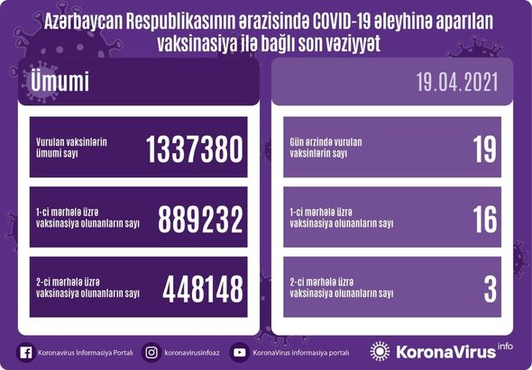 Bu gün Azərbaycanda 19 nəfərə vaksin vurulub.