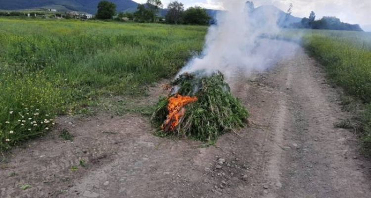 Polis əməkdaşları tərəfindən ümumi çəkisi 800 kiloqram olan 1200 ədəd çətənə kolunun kökündən çıxarılaraq, yandırılması təmin edilib.