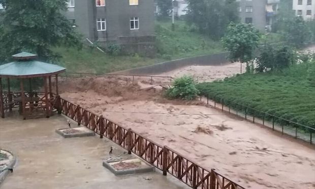Türkiyənin Qara dəniz bölgəsində yerləşən Rizə şəhərində yağan aramsız yağışdan sonra sel şəhəri öz cənginə alıb.