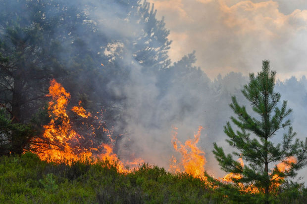 Yardımlı rayonu, Honuba kəndi yaxınlığında dağlıq ərazidə meşə zolağında yanğın davam edir.