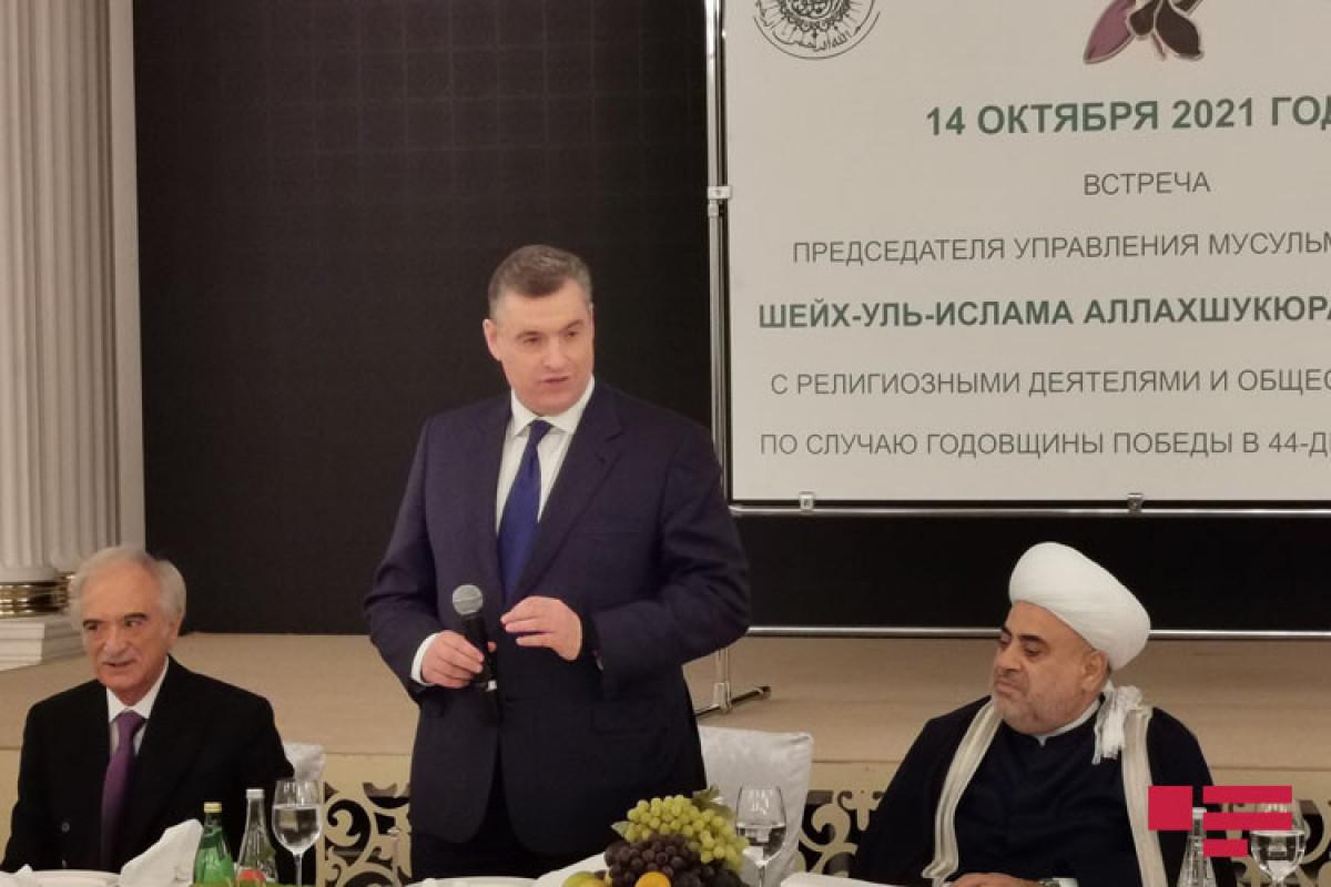 APA-nın Moskva müxbirinin verdiyi məlumata görə, bunu Rusiya Dövlət Dumasının Beynəlxalq Əlaqələr Komitəsinin sədri Leonid Slutski Azərbaycan din xadimlərinin Rusiyanın dini icma rəhbərləri və bu ölkədəki diaspor nümayəndələri ilə İkinci Qarabağ müharibəsində Qələbənin ildönümünə həsr olunan görüşdəki çıxışında bildirib.