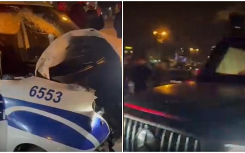 Bakıda “Gelandewagen”lə PPX avtomobili toqquşub - Polis əməkdaşı yaralanıb (VİDEO)
