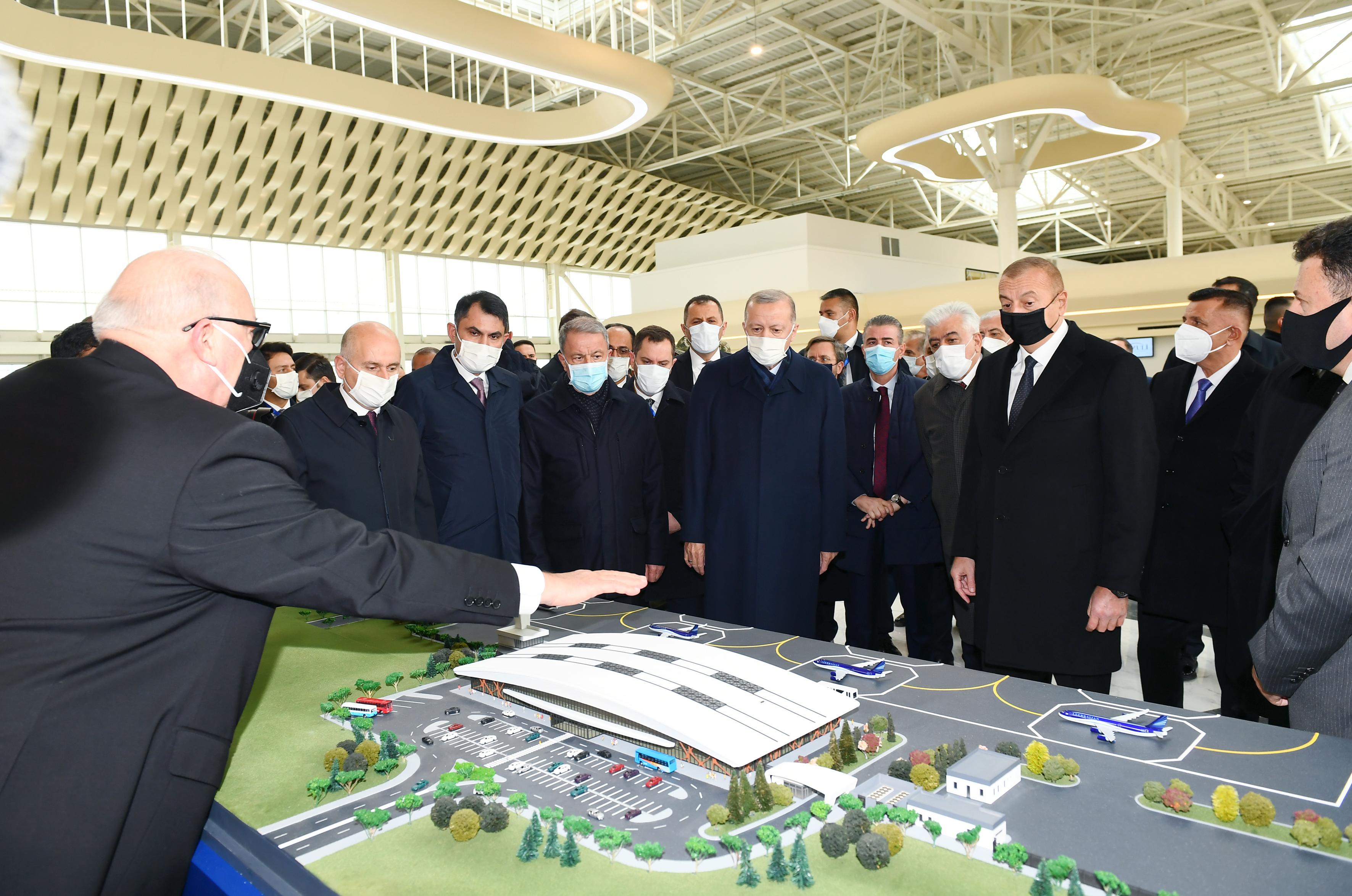 İki ölkənin liderlərinə Füzuli Beynəlxalq Hava Limanının rəmzi açarları təqdim edilib.