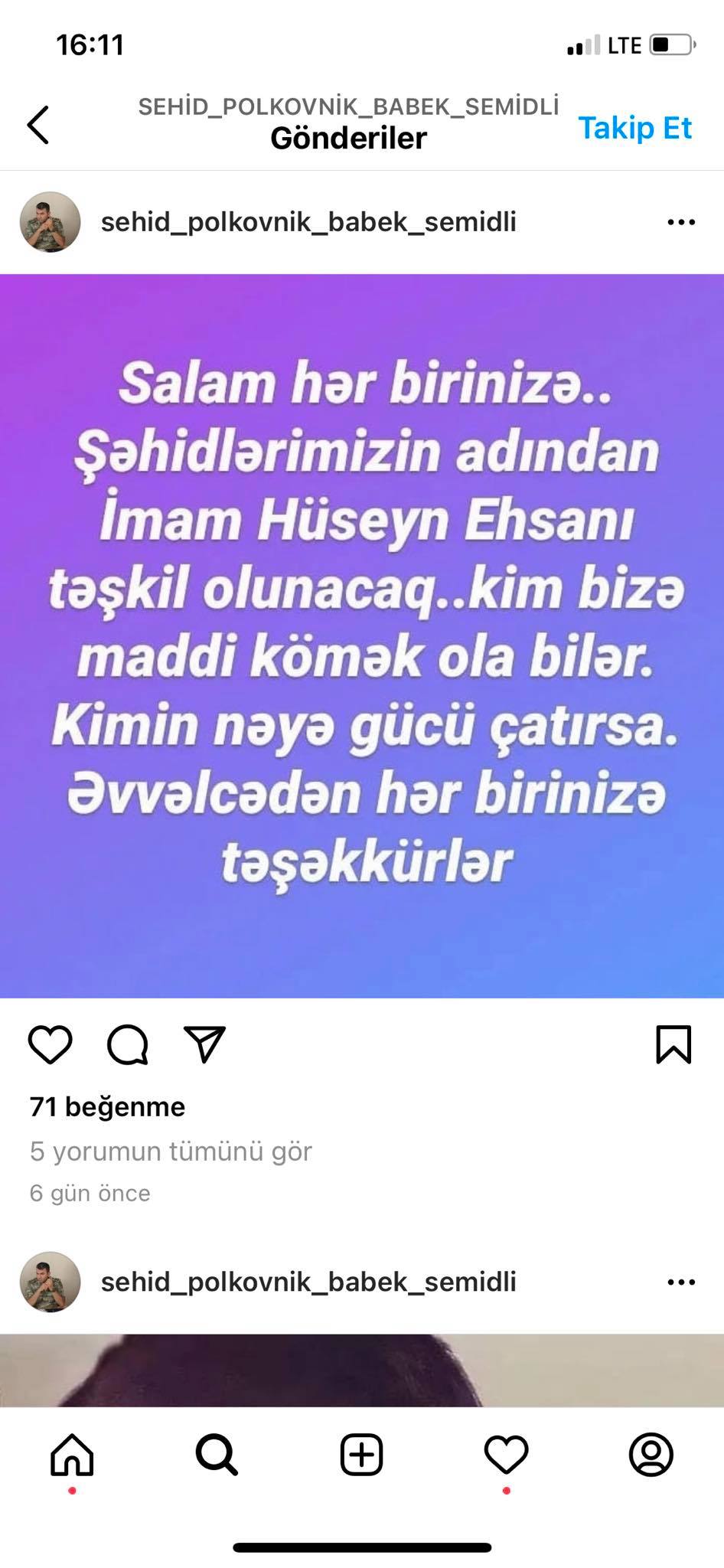 Sosial şəbəkələrdə şəhid polkovnik Babək Səmidlinin adından saxta səhifə açılıb.