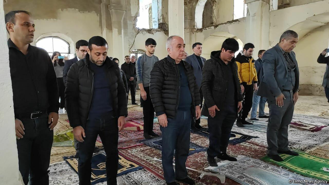Azərbaycan Əlil Arabasında Qılıncoynatma Federasiyasının təşkilatçılığı ilə Bakıdan Ağdama gələn nümayəndə heyətinin üzvləri əvvəlcə Ağdam Cümə məscidində namaz qılıblar.