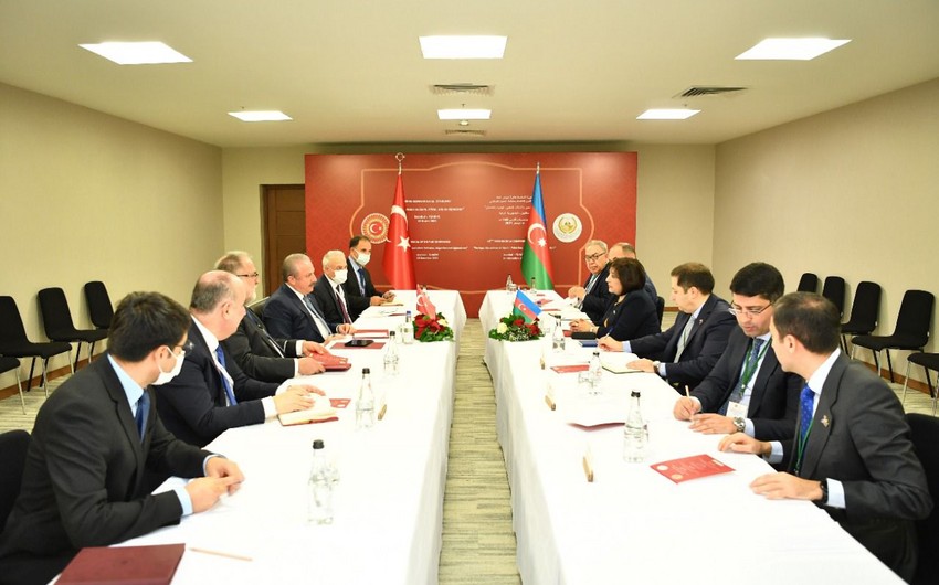 Milli Məclisin sədri Sahibə Qafarova Türkiyə Böyük Millət Məclisinin sədri Mustafa Şentopla görüşüb.