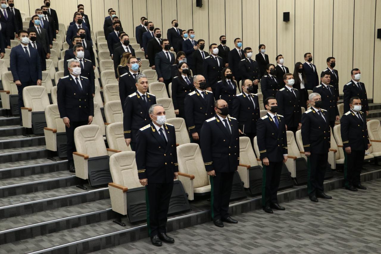 Daha sonra prokurorluqda qulluğa yeni qəbul olunmuş gənclərin vəzifələrə təyin edilməsi barədə Baş Prokurorluq üzrə əmr elan edilmiş, işə qəbul olunanlar təntənəli surətdə and içmiş və onlara xidməti vəsiqələr Baş Prokuror Kamran Əliyev tərəfindən təqdim olunmuşdur.