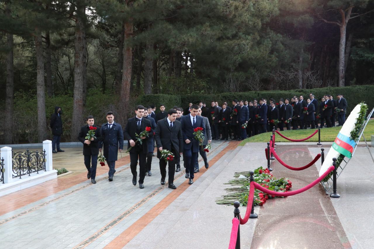 Şəhidlər xiyabanına gələn gənc hüquqşünaslar ölkəmizin azadlığı və suverenliyi uğrunda mübarizədə canlarından keçmiş qəhrəman Vətən övladlarının xatirəsini yad ediblər.