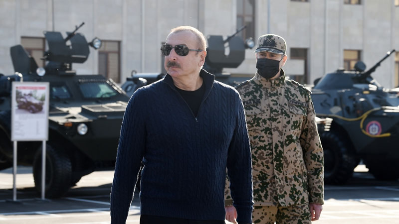 Sonra Prezident, Ali Baş Komandan İlham Əliyev Daxili Qoşunların xüsusi təyinatlıları üçün nəzərdə tutulan silah-sursata və hərbi texnikaya baxdı.