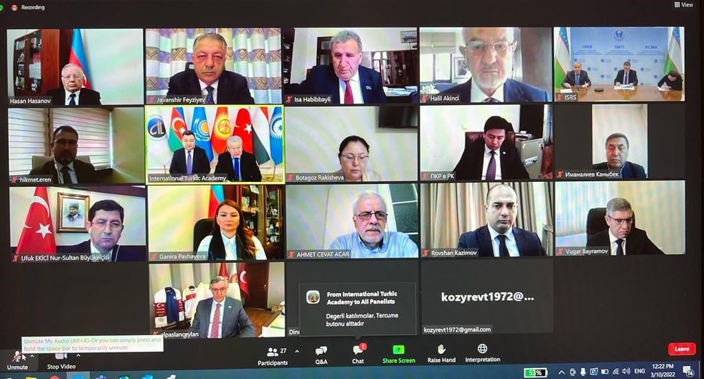 Türk dünyasının tanınmış ictimai-siyasi xadimləri Xəlil Akınçı, İkram Adırbekov, Həsən Həsənov, İsa Həbibbəyli açılış nitqi söyləyərək kitabın ərsəyə gəlməsində böyük əmək sərf etmiş müəlliflərə və Beynəlxalq Türk Akademiyasına minnətdarlığını bildirdilər. 2 saatdan çox davam edən video-konfransda Azərbaycan millət vəkilləri Qənirə Paşayeva, Cavanşir Feyziyev və Vüqar Bayramov, Qırğızıstan millət vəkili Kanıbek İmanaliyev və Qırğız Manas Universitetinin rektoru, professor Alpaslan Ceylan, Qazaxıstan Respublikasından araşdırmaçı alim Botagöz Rakişeva və Nazarbayev vəqfinin Dünya iqtisadiyyat və siyasət institunun direktoru Yerjan Saltıbayev, Özbəkistan Respublikasından Strateji Araşdırmalar İnstitunun direktor müavini Sanvar Vəliyev, Özbəkistan Elmlər Akademiyasının Milli Arxeoloji mərkəzinin Başkan yardımçısı alim Qaybulla Babayar, Türkiyə Cümhuriyyəti Milli Elmlər Akademiyasının sabiq prezidenti Əhməd Cavad və başqaları çıxış ediblər.